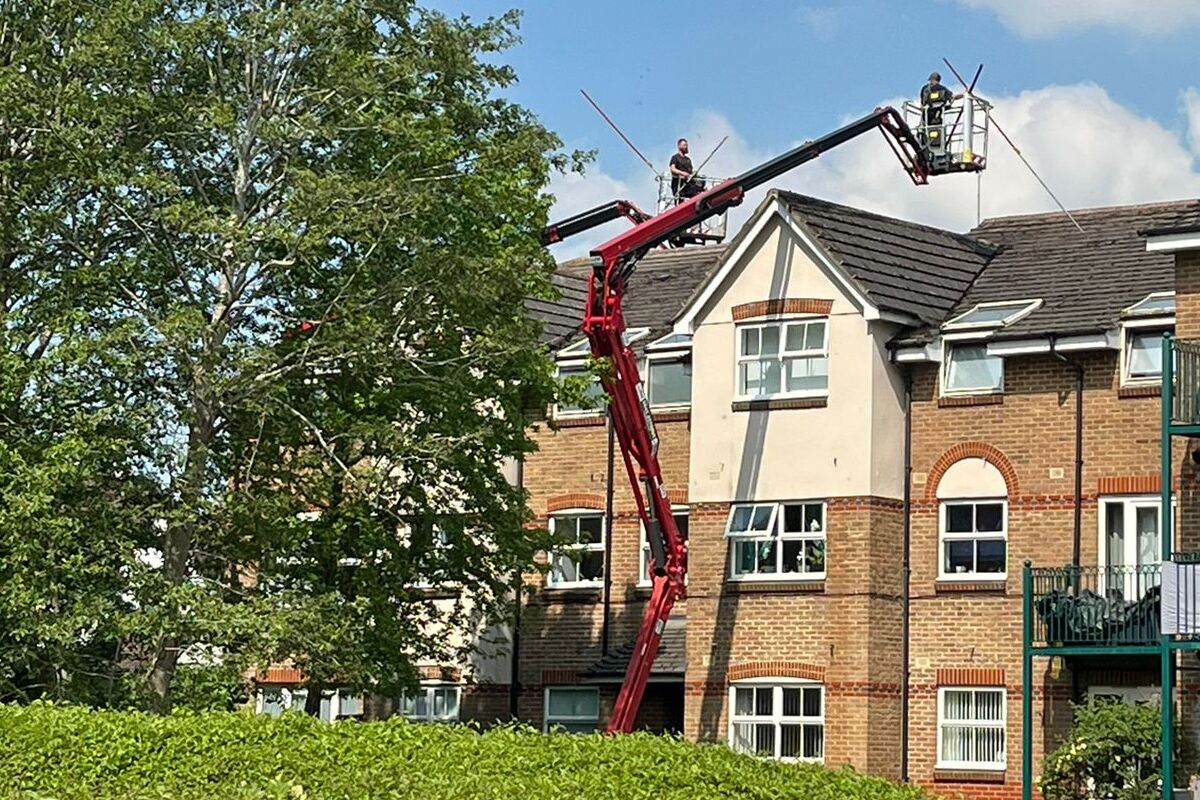 Our team used Mansafe roof access systems and cherry pickers to carry out full gutter clearance and debris removal.